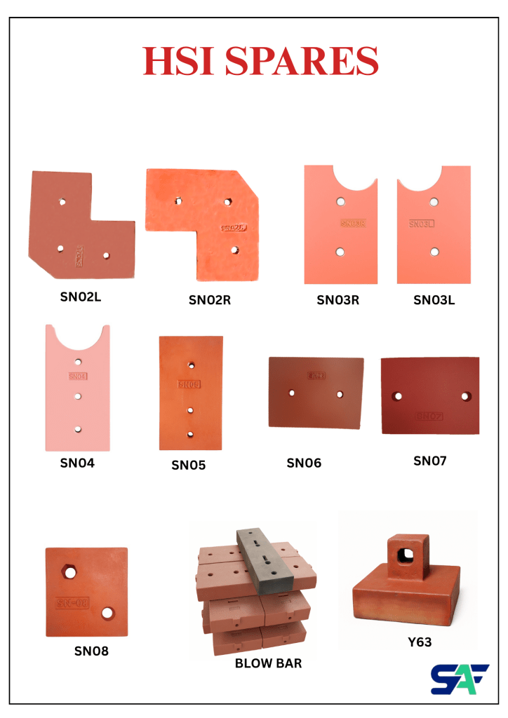 Ensure your HSI crusher operates at its best with high-quality spares from Shendhur Alloys. We specialize in manufacturing and supplying premium HSI crusher parts including blow bars, impact plates, liner plates, and rotor assemblies for all major crusher brands.
